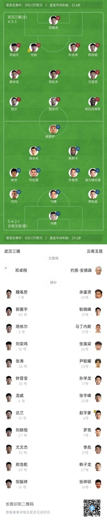 04月12日讯 北京时间19:35,中超第6轮,武汉三镇vs云南玉昆。此前三镇主帅马丁斯下课,暂由邓卓翔代理主帅职务。赛前,双方公布首发名单。
